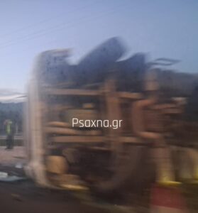 Τροχαίο στην Εθνική οδό Αθηνών - Λαμίας με ανατροπή νταλίκας