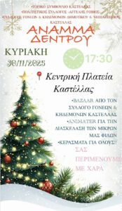 Κυριακή 30 Νοεμβρίου ανάβει το Χριστουγεννιάτικο δένδρο στην Καστέλλα