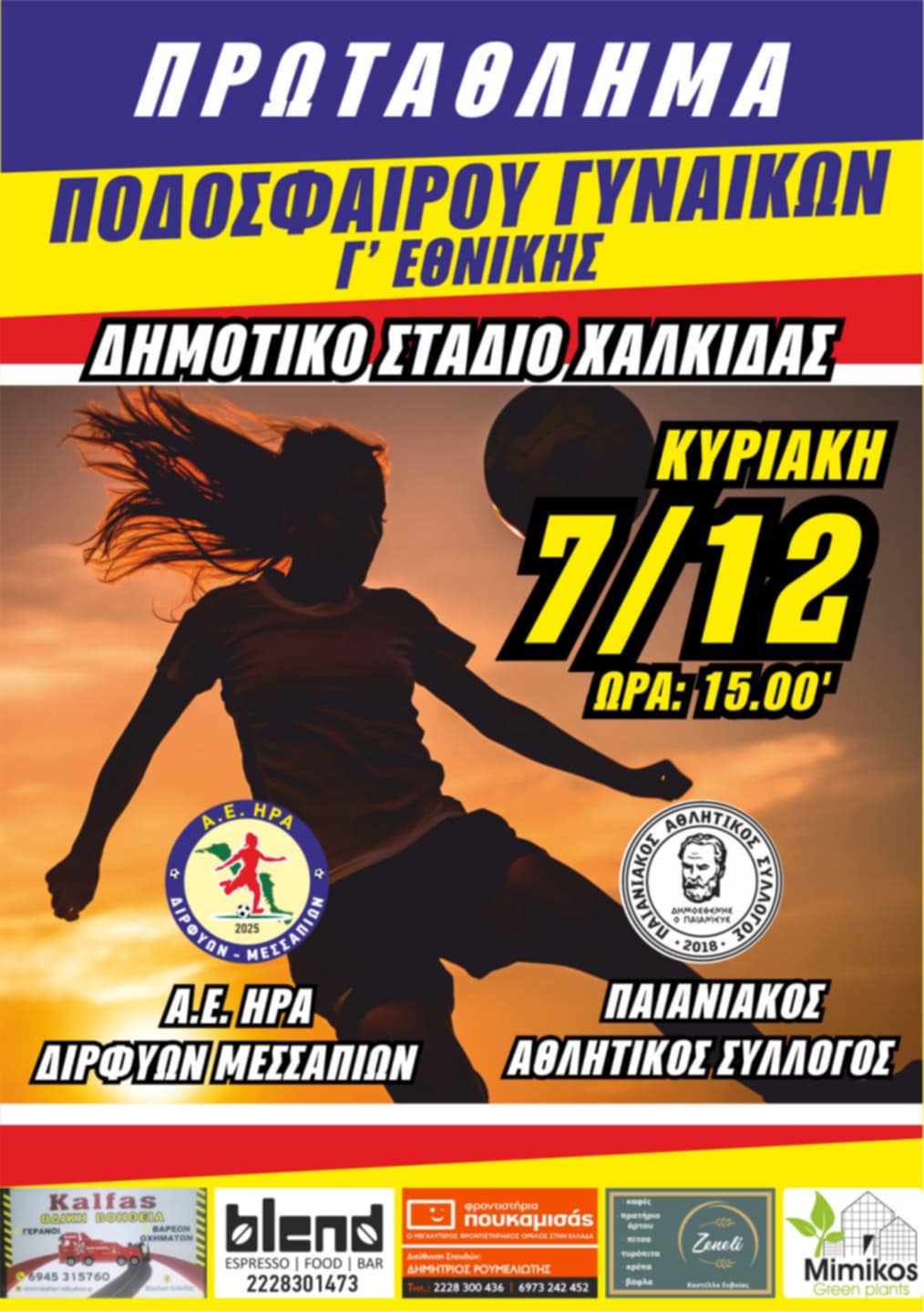 Ήρα Διρφύων Μεσσαπίων – Παιανιακός (Κυριακή 7/12/25 15:00 Δημοτικό στάδιο Χαλκίδας)
