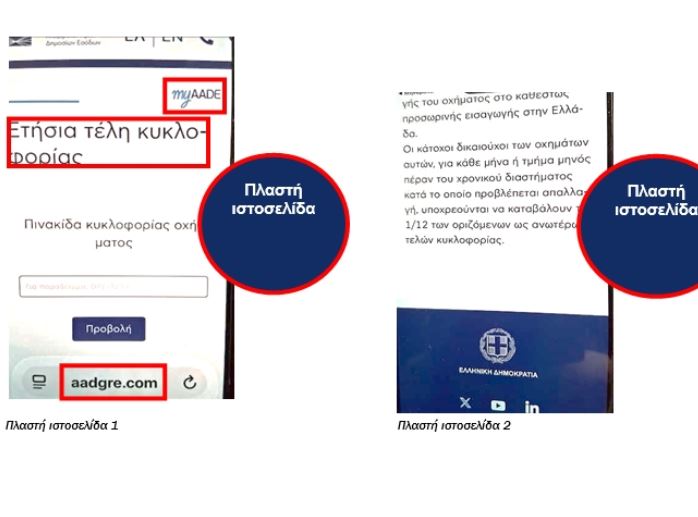 Τα μηνύματα αυτά, με την πρόφαση «μη καταβληθέντος ετήσιου φόρου κυκλοφορίας», ζητούν από τους παραλήπτες να πατήσουν σε σύνδεσμο (link) για να πληρώσουν δήθεν τέλη κυκλοφορίας οχημάτων.