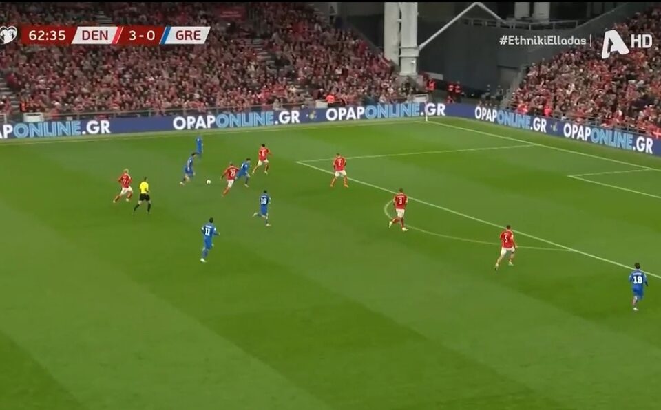 Παρότι η Ελλάδα είχε μπει καλύτερα στο ματς και ήλεγχε τον ρυθμό, η Δανία ξετύλιξε το δώρο του Ζαφείρη και άνοιξε το σκορ με τον Χόιλουντ στο 22ο λεπτό.