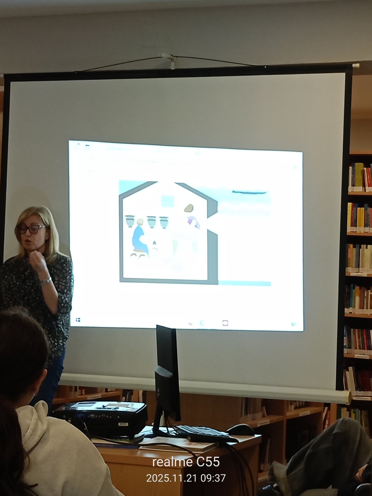 Στο πλαίσιο του Προγράμματος «Ενεργός Πολίτης – Πυλώνας 3: Υγεία και Ευημερία», το Γυμνάσιο Καθενών, πραγματοποίησε την Παρασκευή 21 Νοεμβρίου 2025 εκπαιδευτική επίσκεψη στη Δημοτική Βιβλιοθήκη Καθενών με θέμα τη διατροφή των Αρχαίων Ελλήνων.