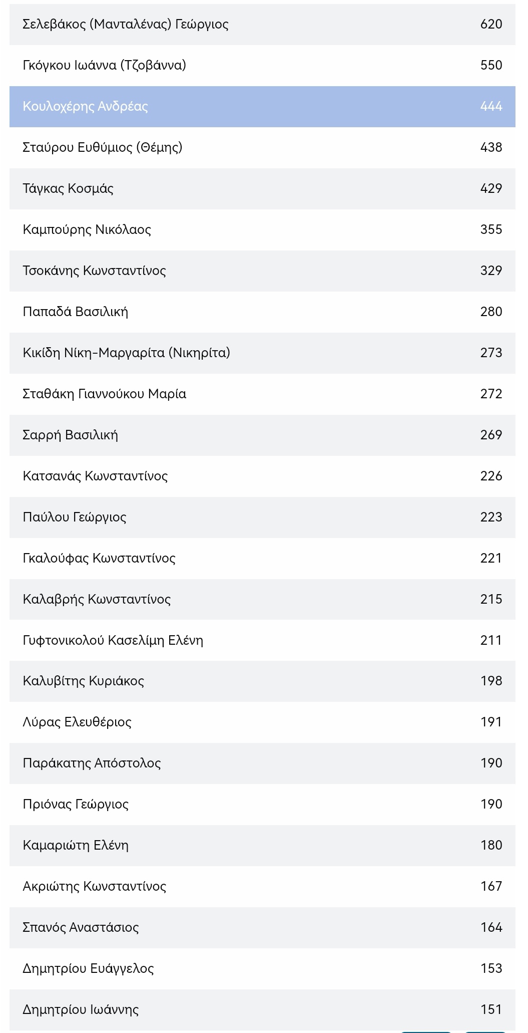 Δήμος Διρφύων Μεσαπίων (Ενότητα Μεσσαπίων) :Σταυροί προτίμησης υποψηφίων Δημοτικών συμβούλων συνδυασμού Χριστίνας Αβραμίδου 96,97%