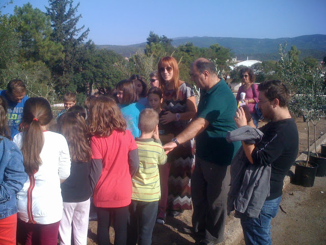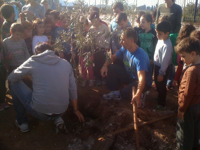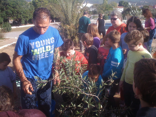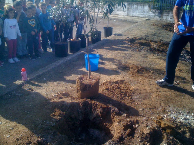 Αφού έγινε η απαραίτητη ενημέρωση των παιδιών από Ειδικό Επιστήμονα της Γεωπονίας (ο οποίος παραυρέθηκε) για την ελιά και την ιστορία της,τα παιδιά υπό την επίβλεψη του ιδίου αλλά και του Κου Σταθαρά ( Προέδρου του Συλλόγου) ο οποίος ήταν στην πρώτη γραμμή,φύτεψαν με τα χεράκια τους τους καρπούς οι οποίοι σε λίγα χρόνια θα γίνουν μεγάλες ελιές στην αυλή του σχολείου.
