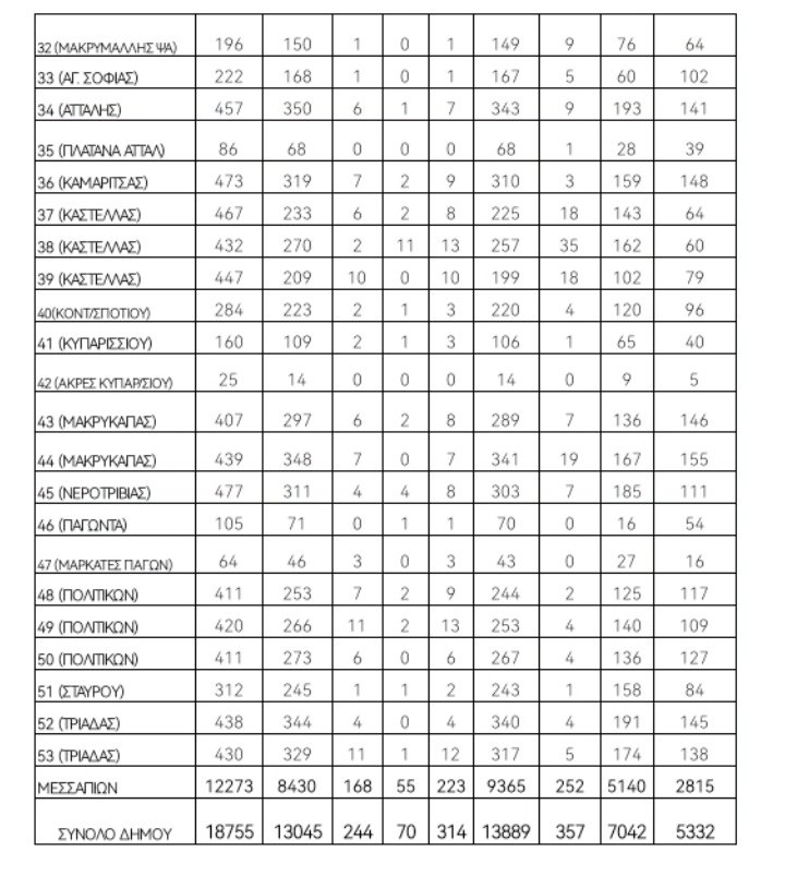 Δημοτικές εκλογές 2023 Δήμος Διρφύων Μεσαπίων:Συγκεντρωτικά αποτελέσματα ανά εκλογικό τμήμα