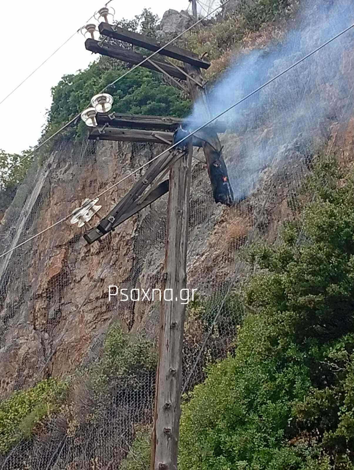 Δροσιά:Κολώνα της ΔΕΗ άρπαξε φωτιά