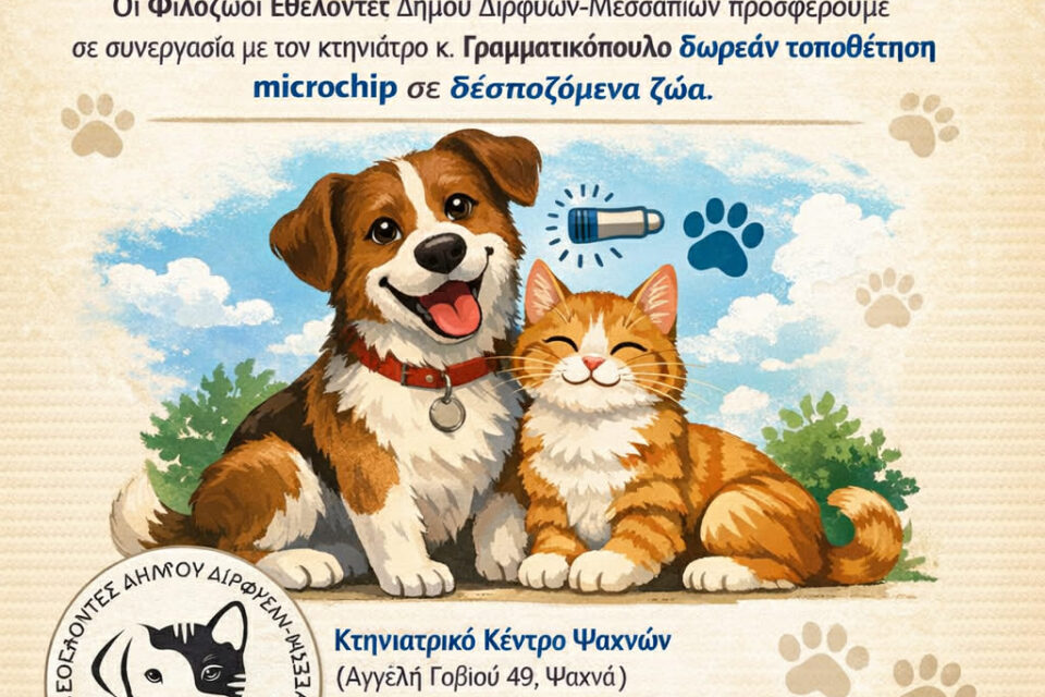 Δωρεάν τοποθέτηση microchip σε ζώα συντροφιάς στα Ψαχνά