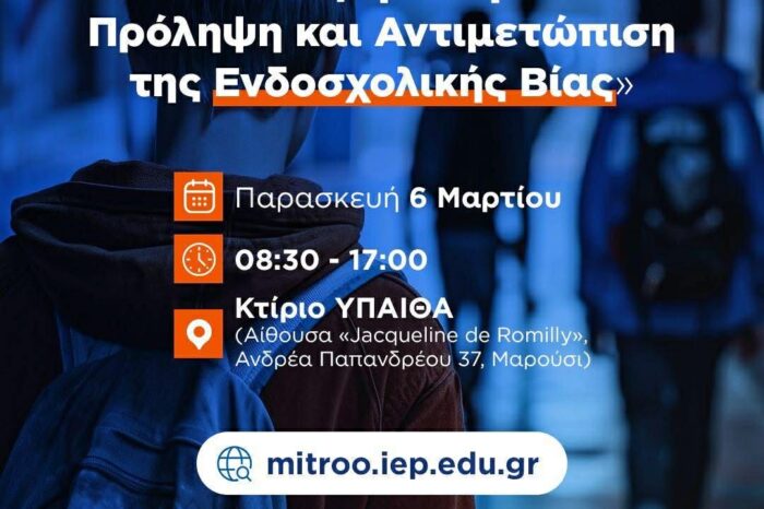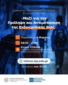 • Διακρατικό Επιστημονικό Συνέδριο Ελλάδας – Κύπρου με θέμα: «Μαζί για την Πρόληψη και Αντιμετώπιση της Ενδοσχολικής Βίας»