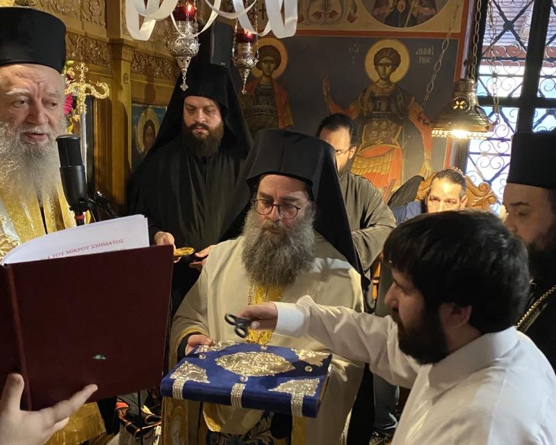 Το Σάββατο το απόγευμα, κατά τον αναστάσιμο και μεθέορτο Εσπερινό, χοροστάτησε ο Σεβασμιώτατος Μητροπολίτης Χαλκίδος και συμπαρόντων του Σεβασμιωτάτου Μητροπολίτου Καρυστίας και Σκύρου κ. Σεραφείμ και του Θεοφιλεστάτου Επισκόπου Σκοπέλου κ. Νικοδήμου, τέλεσε την κουρά του εκ Χαλκίδος καταγόμενου, δοκίμου μοναχού Σωτηρίου Λέκκα, τελειοφοίτου της Σχολής Μαθητείας Υποψηφίων Κληρικών Αθηνών, στον οποίο έδωσε το όνομα Παρθένιος.