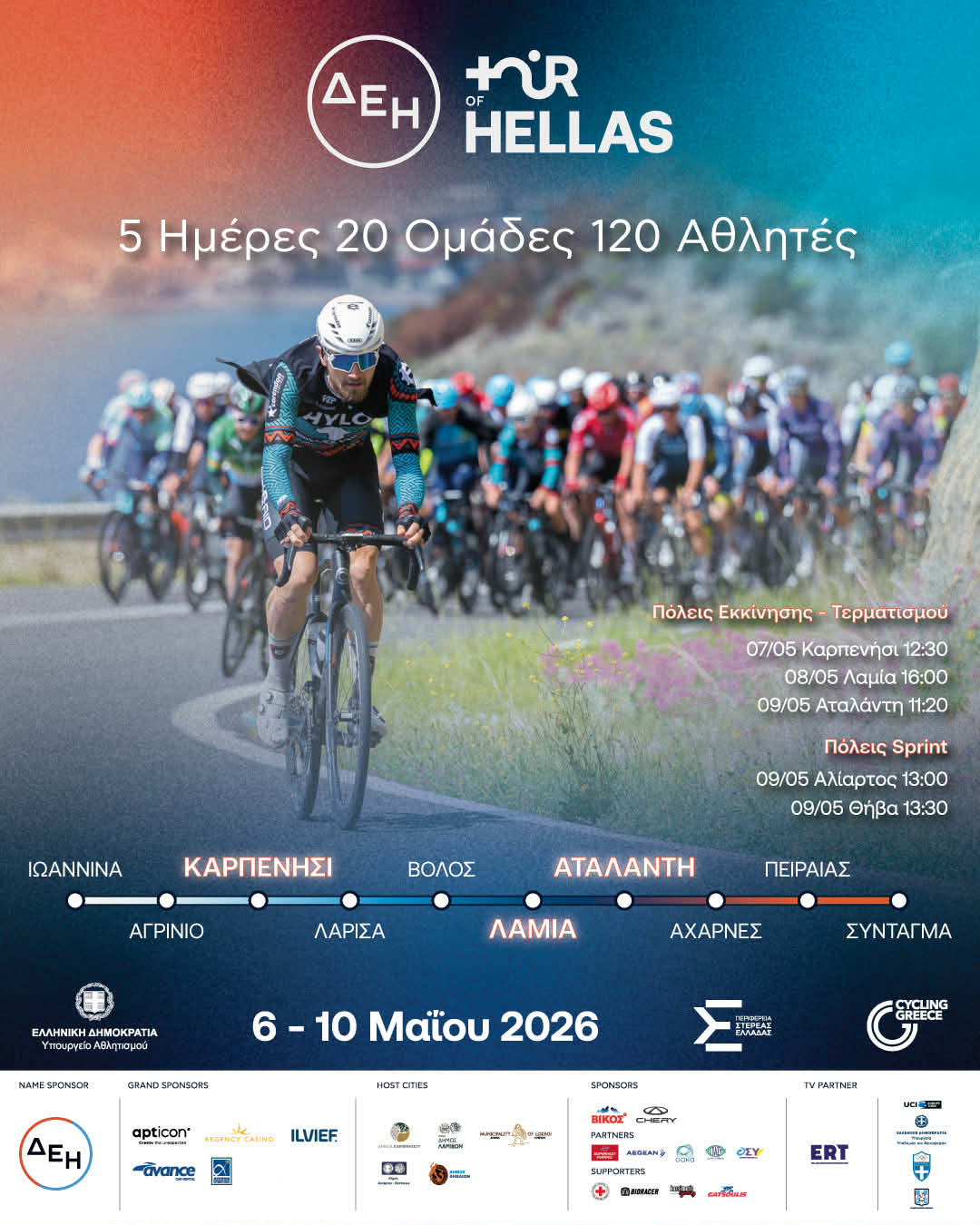 Όπως αναφέρεται στην επίσημη ανακοίνωση του «ΔΕΗ Tour Of Hellas 2026» ο ποδηλατικός γύρος Ελλάδας θα πραγματοποιηθεί από τις 6 έως τις 10 Μαΐου 2026,και οι πόλεις της Στερεάς Ελλάδας  από τις οποίες θα περάσει είναι το Καρπενήσι ,η Λαμία ,η Αταλάντη , ο Αλίαρτος ,και η Θήβα.