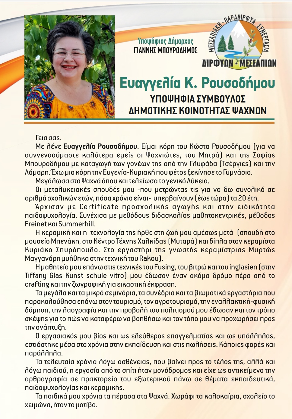 Ευαγγελία Ρουσοδήμου:Υποψήφια τοπική σύμβουλος Δημοτικής κοινότητας Ψαχνών