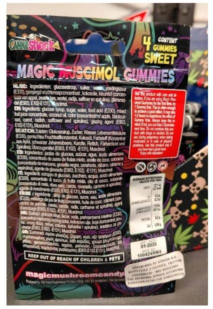 Το προϊόν εξετάστηκε από το Γ’ Τμήμα Ναρκωτικών της Β’ Χημικής Υπηρεσίας Αθηνών του Γενικού Χημείου του Κράτους της ΑΑΔΕ, όπου σύμφωνα με τον ΕΦΕΤ, διαπιστώθηκε η παρουσία της ουσίας μουσκιμόλη, η οποία προέρχεται από το μανιτάρι Amanita muscaria και παρουσιάζει ψυχοδραστικές ιδιότητες.