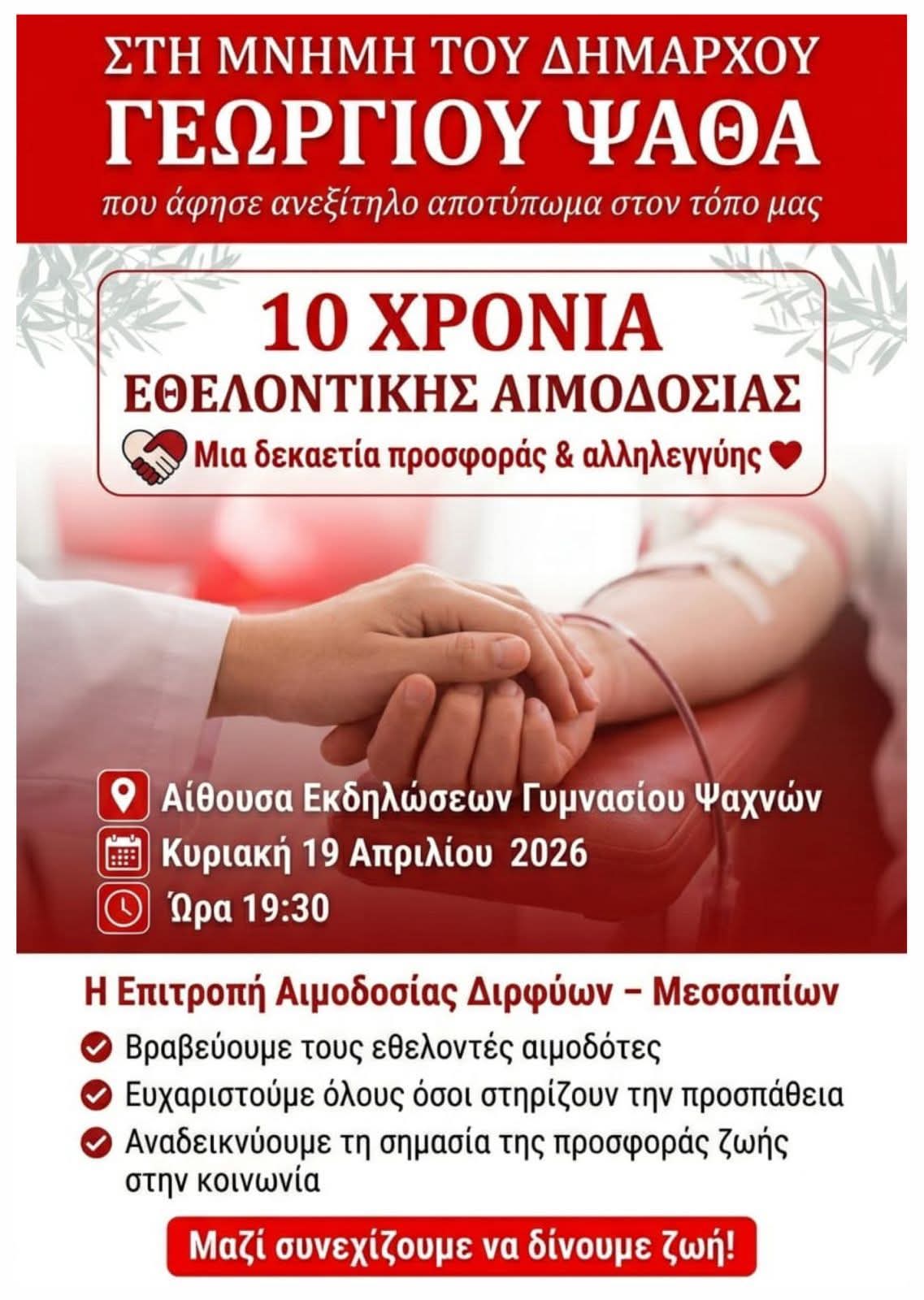 Η επιτροπή αιμοδοσίας του Δήμου Διρφύων Μεσσαπίων τιμάει την Κυριακή τον αείμνηστο και αξέχαστο Γιώργο Ψαθά