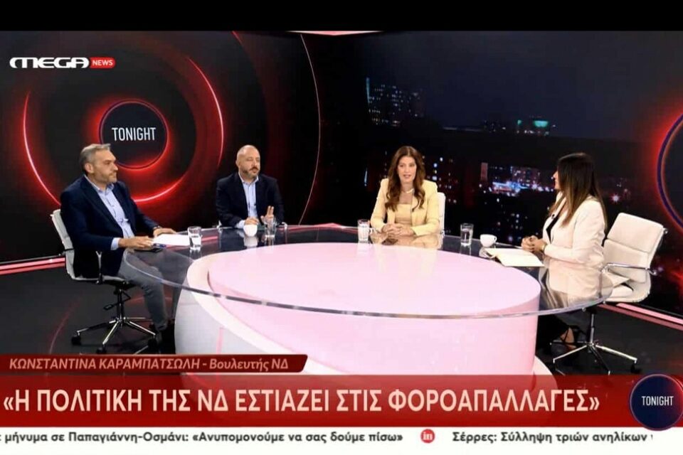 Με δυναμική παρουσία, τεκμηριωμένο λόγο και σαφές πολιτικό στίγμα, η βουλευτής Εύβοιας της Νέας Δημοκρατίας, Κωνσταντίνα Καραμπατσώλη, συμμετείχε στην εκπομπή “Tonight” του MEGA με τη δημοσιογράφο Βούλα Κεχαγιά, το βράδυ του Σαββάτου 18 Οκτωβρίου (Δείτε την εκπομπή εδώ)
