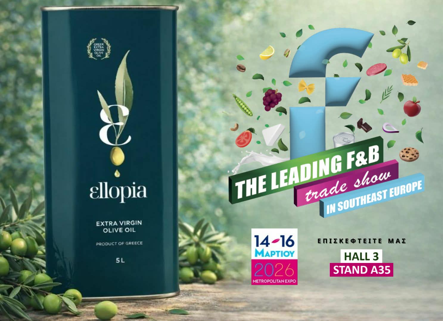 Η «Ellopia Olive Oil» θα συμμετάσχει στην Διεθνή Έκθεση Food Expo – Greece στην Αθήνα, μία από τις σημαντικότερες εκθέσεις Τροφίμων & Ποτών που θα πραγματοποιηθεί από 14 έως 16 Μαρτίου 2026.