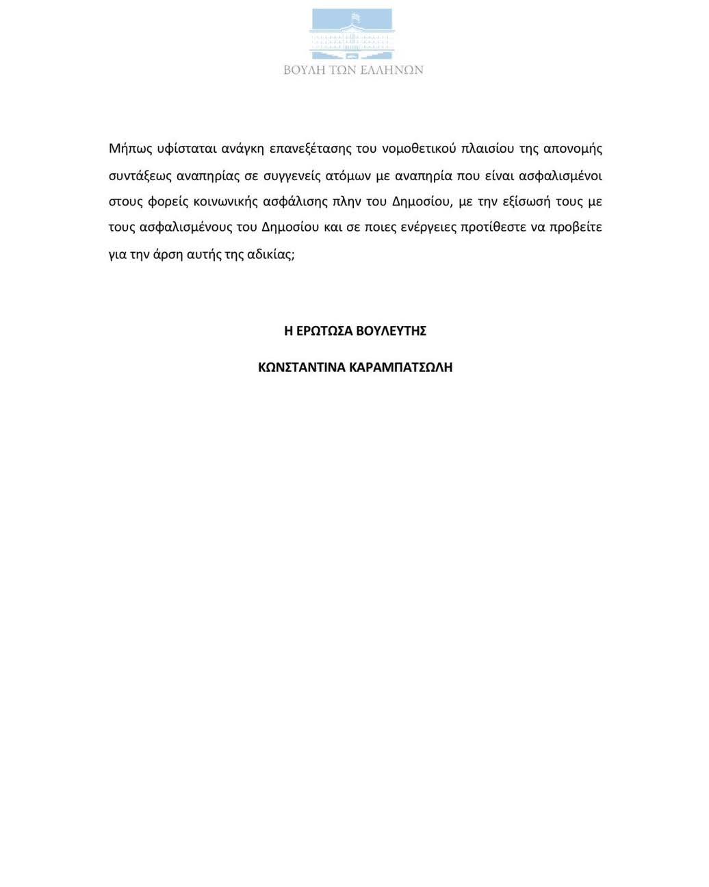 Κωνσταντίνα Καραμπατσώλη: Παρεμβάσεις για την άρση ανισοτήτων στους φροντιστές ΑμεΑ και ενίσχυση των εργασιακών δικαιωμάτων