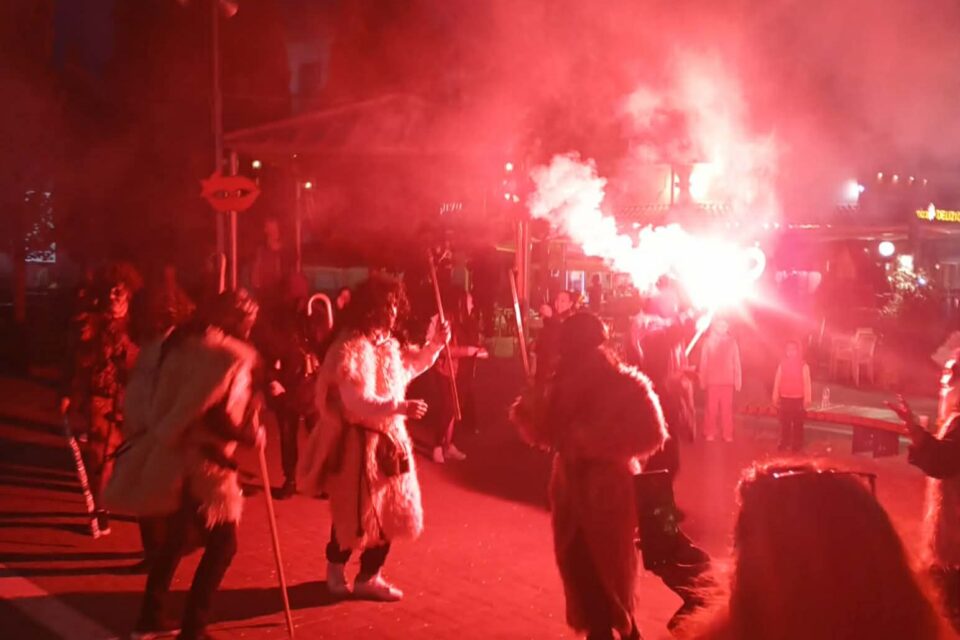Οι εκδηλώσεις συνεχίστηκαν το βράδυ με την αναβίωση του εθίμου των Κουδουνάδων.