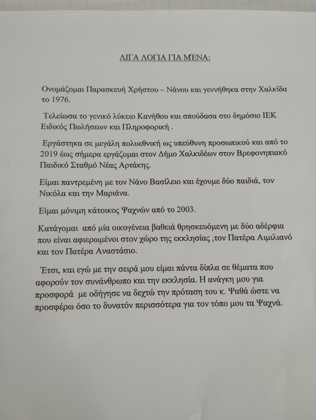 Υποψήφια με το ψηφοδέλτιο του Γιώργου Ψαθά στο τοπικό Συμβούλιο Ψαχνών θα είναι η η Παρασκευή Χρήστου-Νάνου