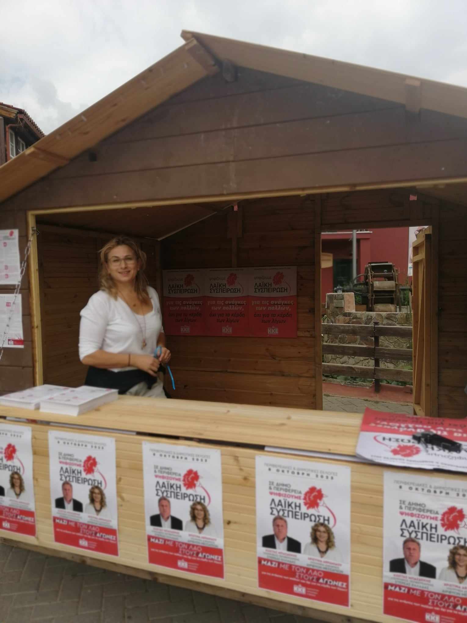 Η περιοδεία κατέληξε στο εκλογικό περίπτερο που έχει στήσει η Λαϊκή Συσπείρωση, στην κεντρική πλατεία των Ψαχνών. Κάθε δημότης μπορεί με αυτόν τον τρόπο,  να έρθει σε επαφή με τον συνδυασμό της Λαϊκής Συσπείρωσης και να προμηθευτεί υλικό για την ενημέρωσή του.