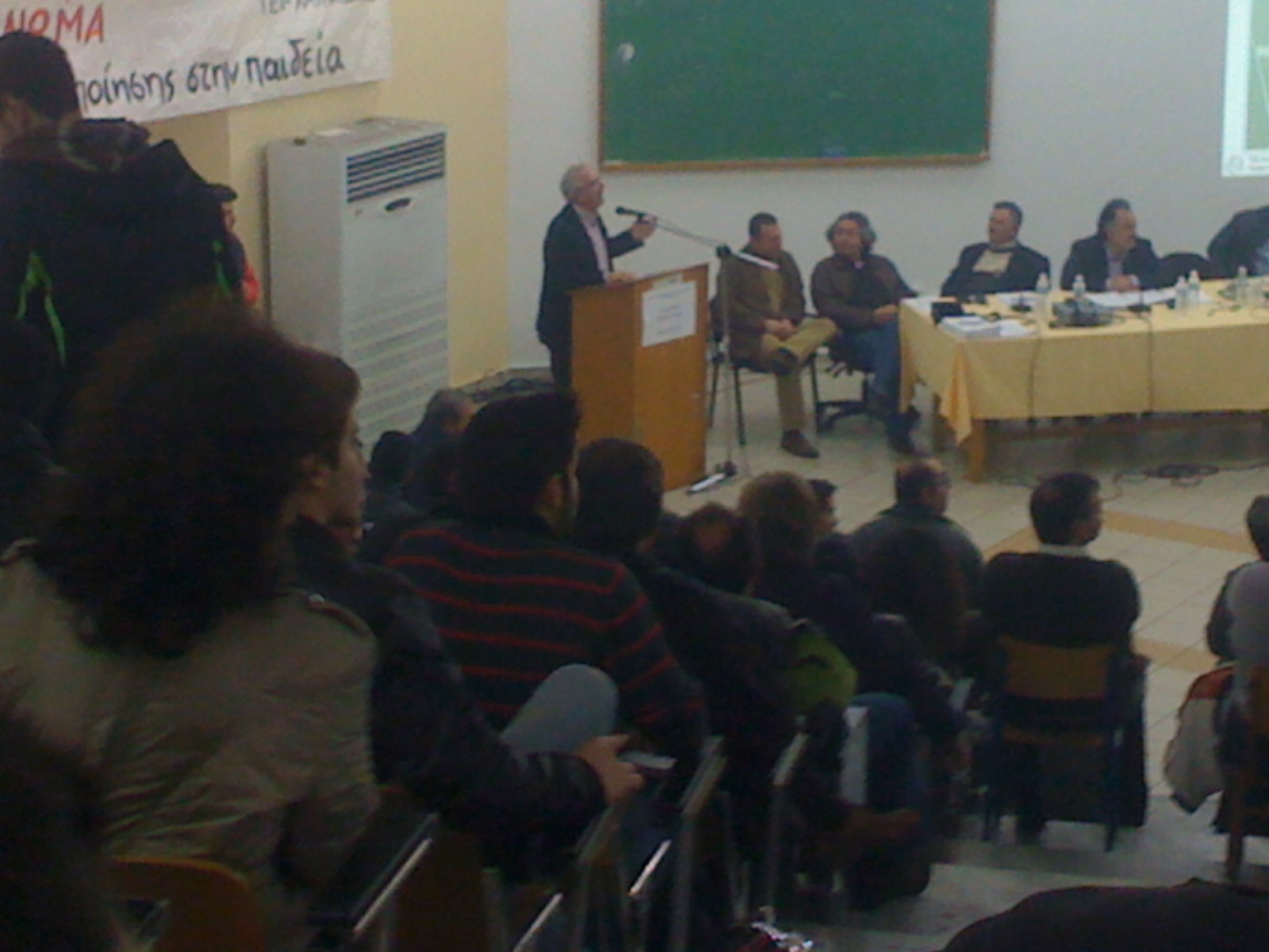Με μία σύντομη ομιλία εξήγησε τους λόγους της συγκέντρωσης οι οποίοι δεν ήταν άλλοι από την προσπάθεια του να κρατήσουμε τόσο τα τμήματα όσο και το ΤΕΙ με νύχια και με δόντια στα ΨΑχνά.