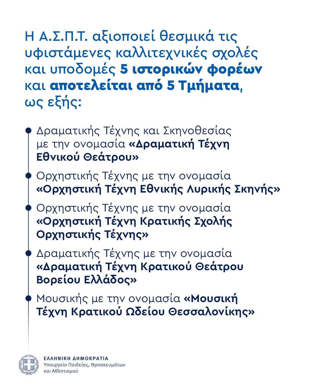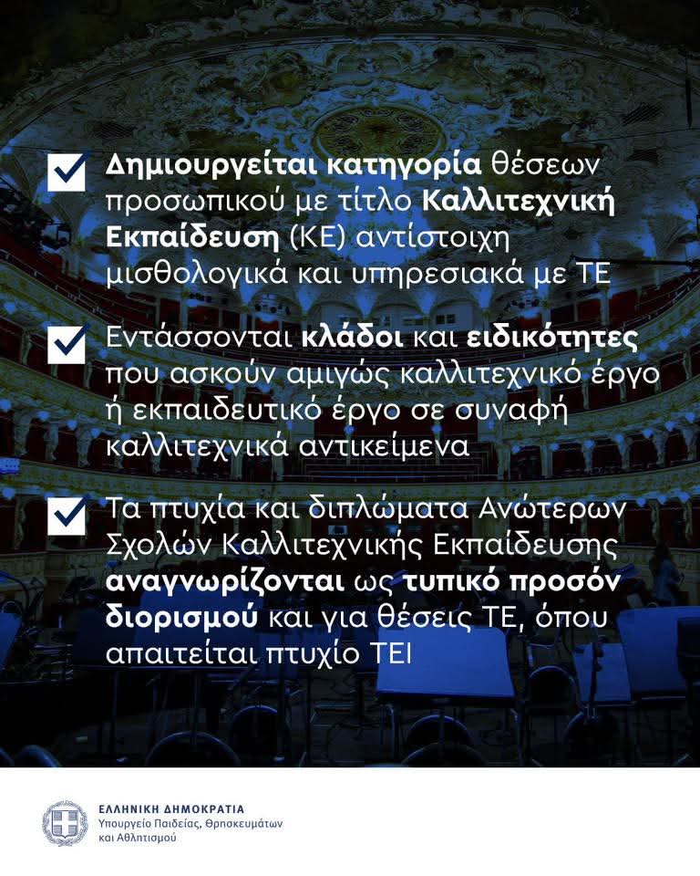 Για πρώτη φορά, η καλλιτεχνική εκπαίδευση αποκτά το πανεπιστημιακό πλαίσιο που της αξίζει – με διαφάνεια, ακαδημαϊκή πληρότητα και θεσμική κατοχύρωση.