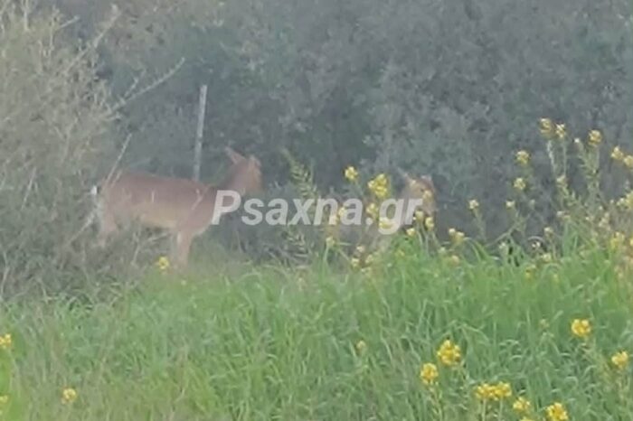 Ελάφια εμφανίστηκαν στο δρόμο Ψαχνών-Τριάδας (video)