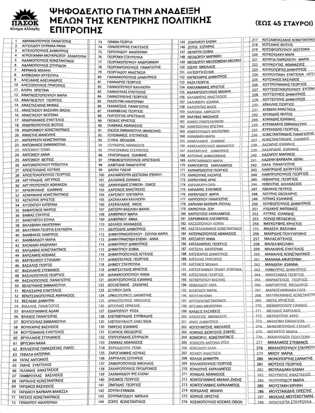 Δείτε τη λίστα των υποψηφίων για τη νέα Κ.Ε του ΠΑΣΟΚ: