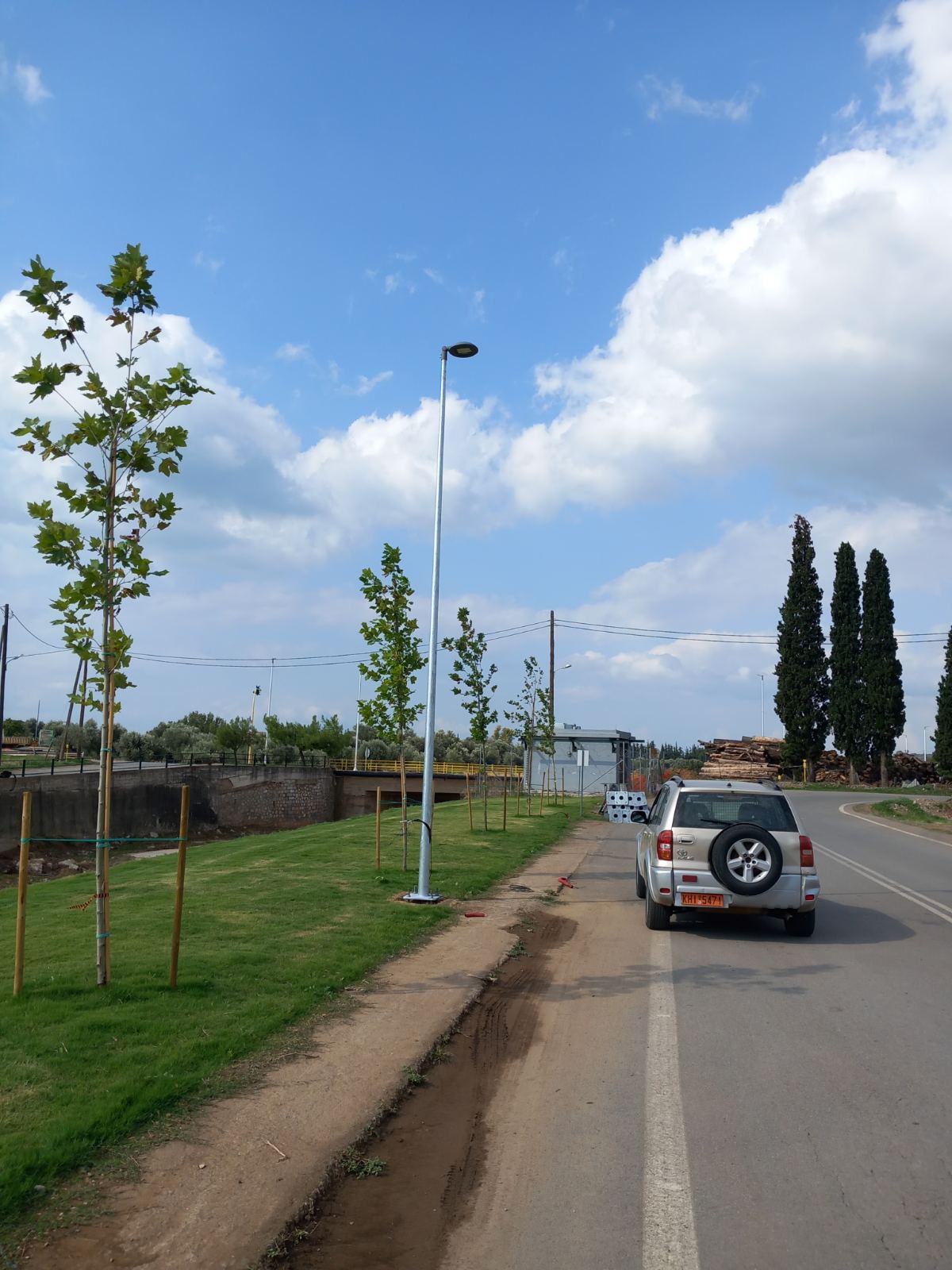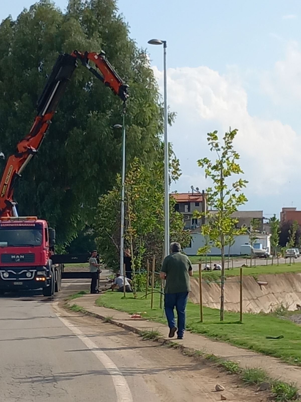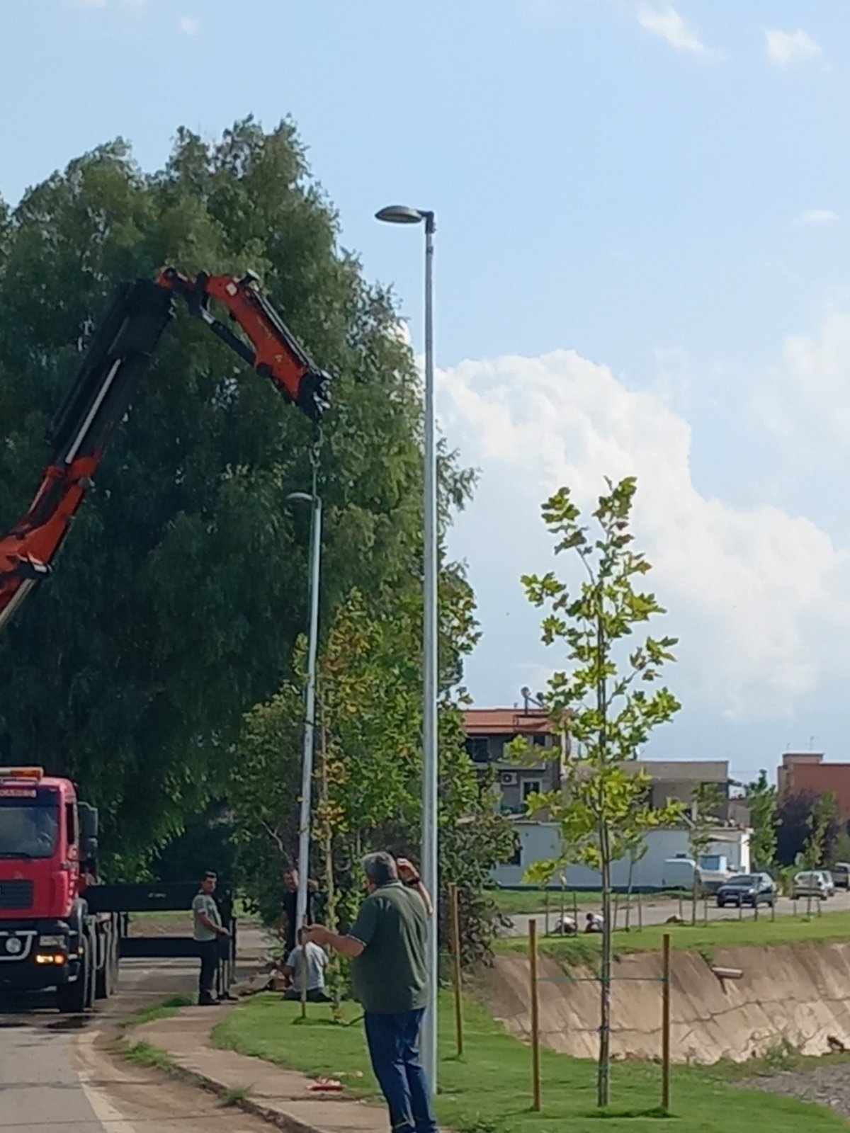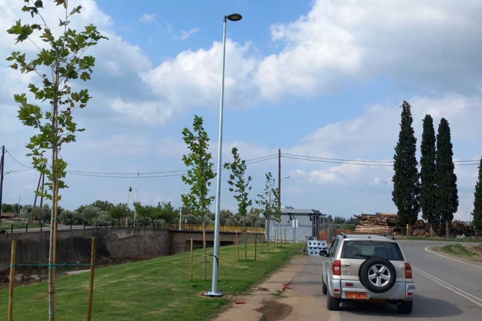 Οι παρεμβάσεις στον Παραποτάμιο συνεχίζονται και μετά το γκαζόν και εχθές τα παγκάκια, σήμερα τοποθετείται και ο φωτισμός