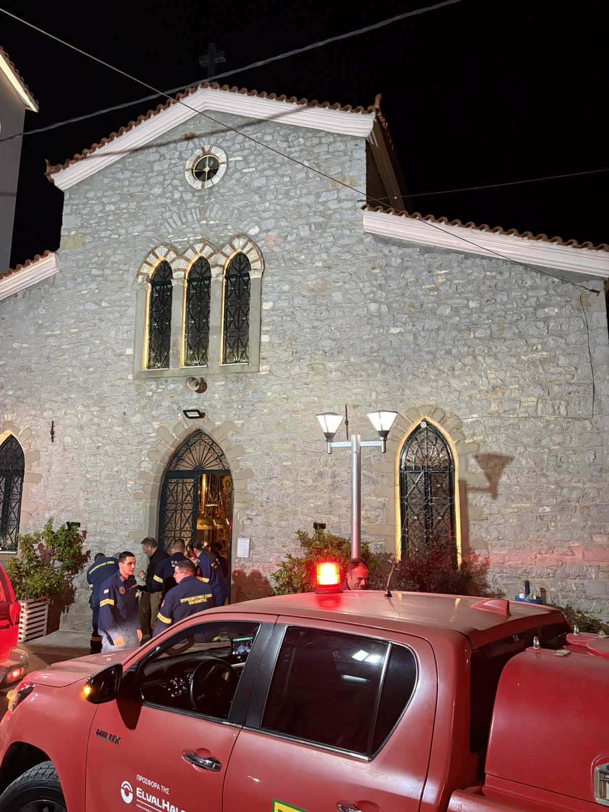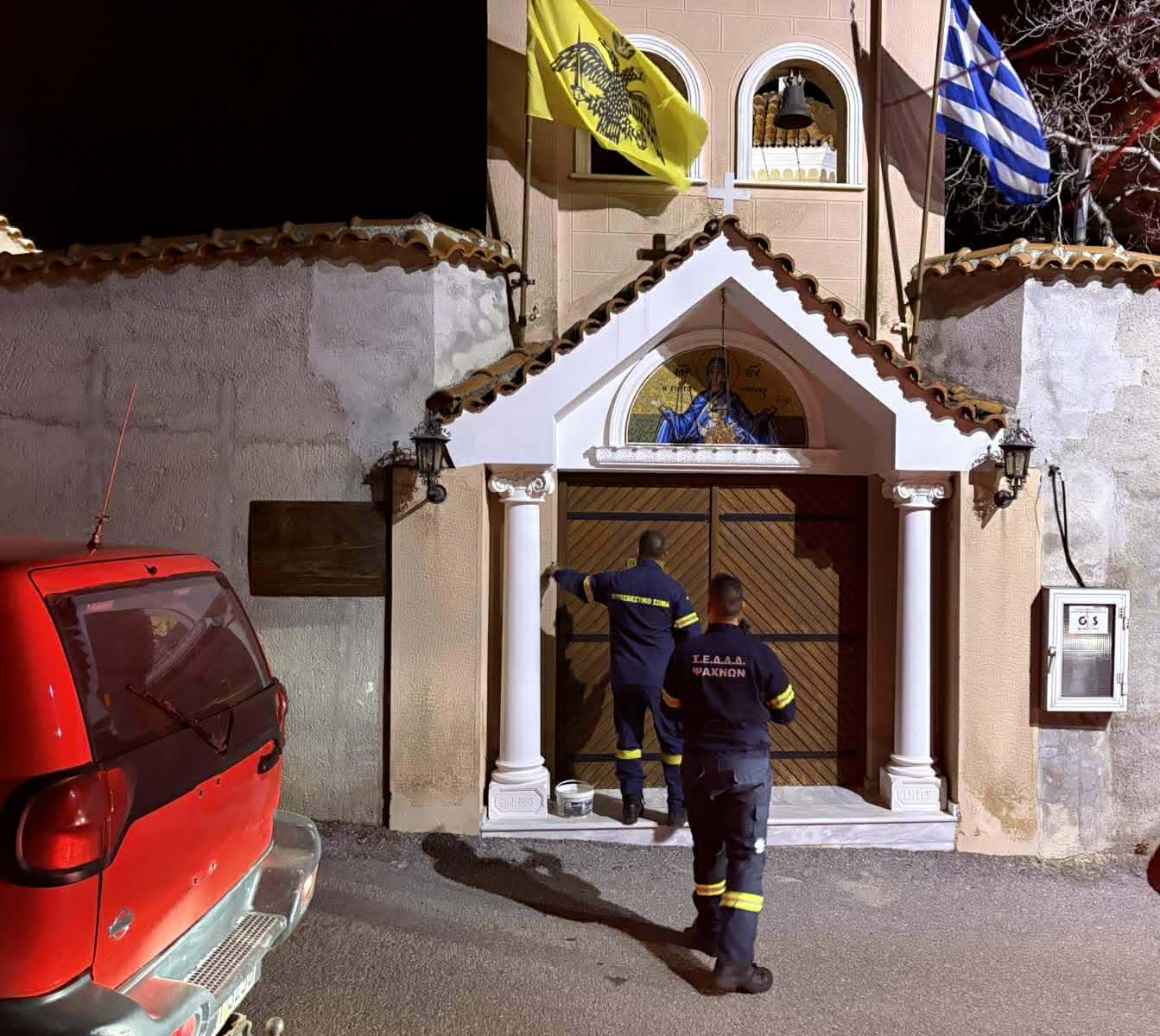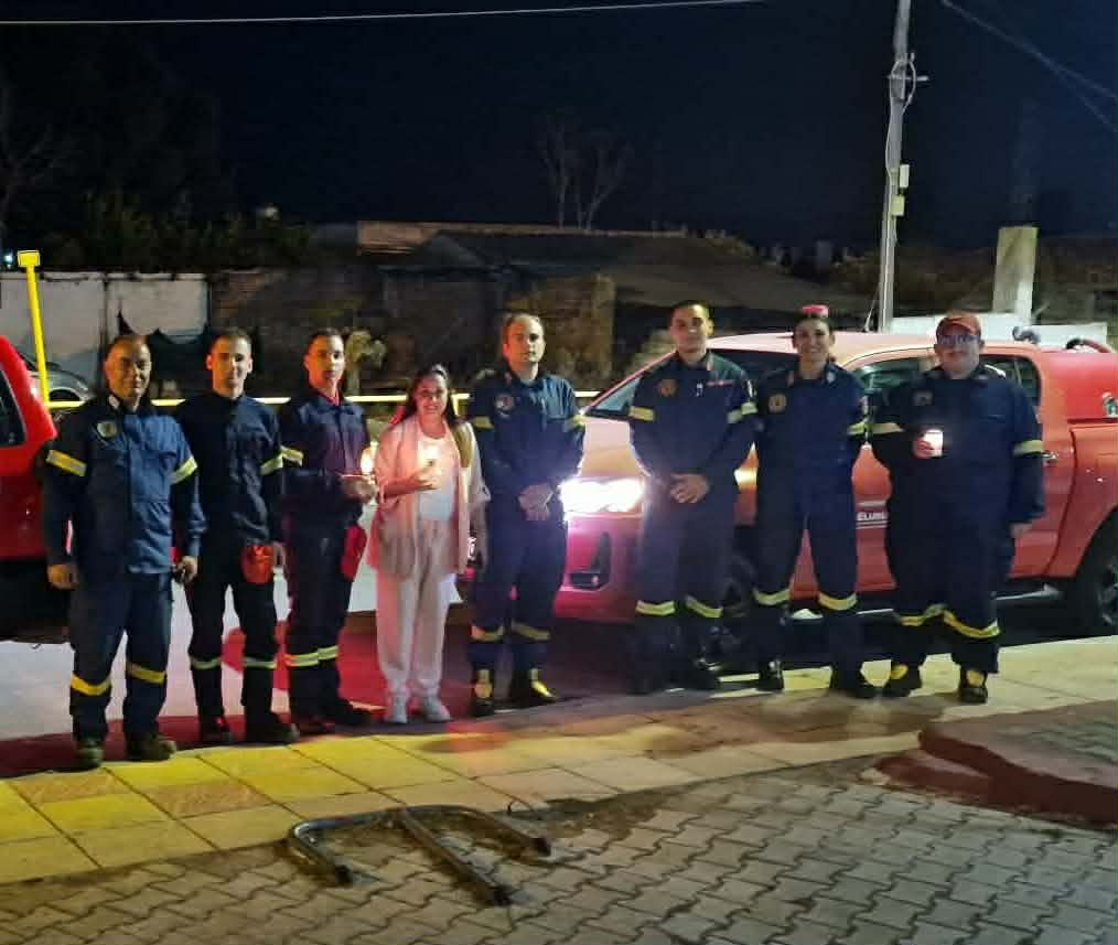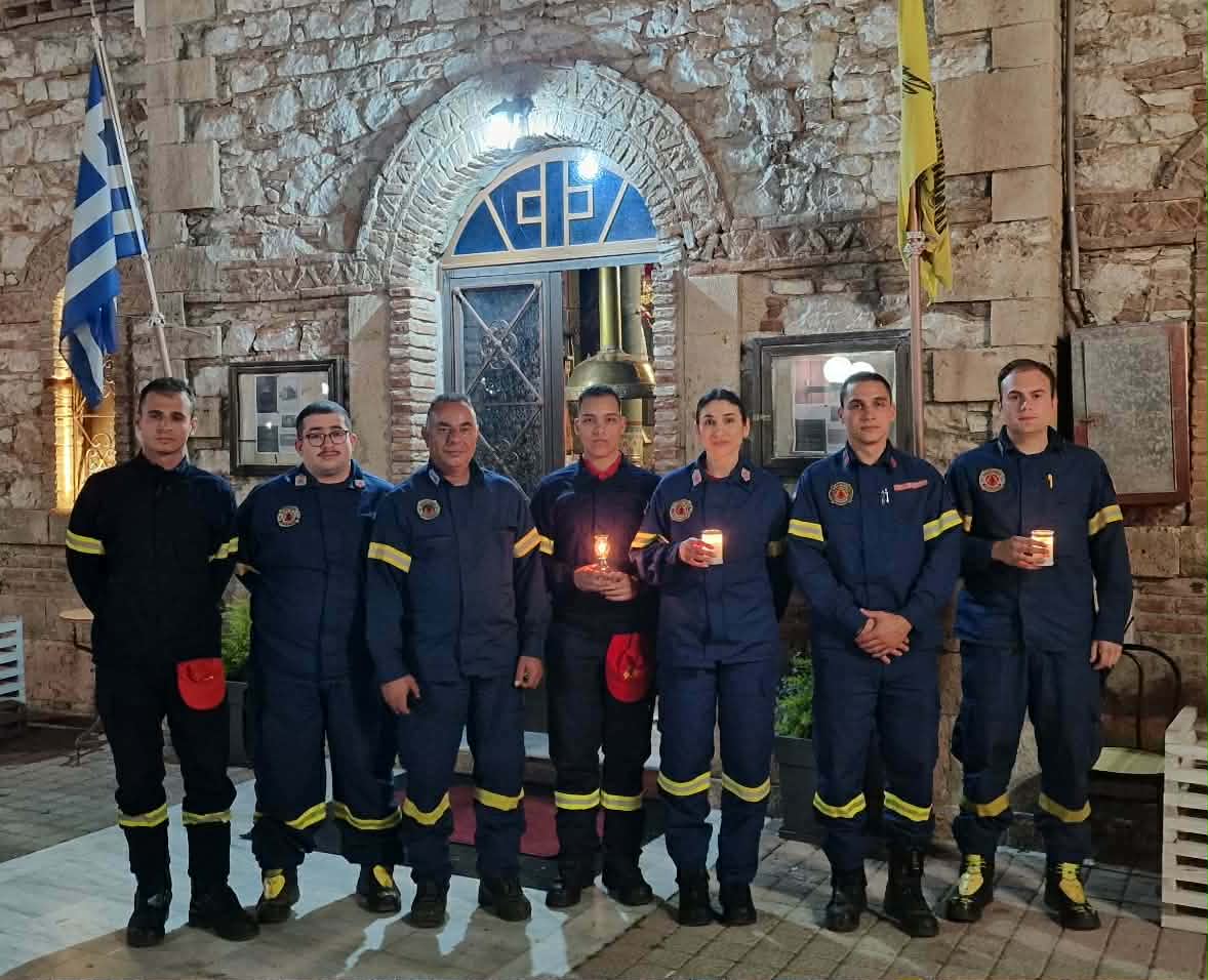 Οι εθελοντές του ΣΕΔΔΔ Ψαχνών με την Πρόεδρο της Καστέλλας κα Γιούλη Κατσού, κατά την παραλαβή του Αγίου Φωτός στην εκκλησία της Καστέλλας