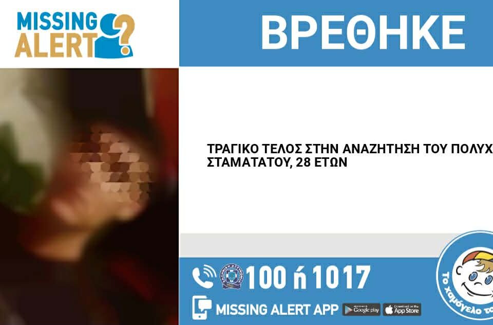 Να υπενθυμίσουμε, ότι ο Πολυχρόνης Σταματάτος, 28 ετών, εξαφανίστηκε στις 03/04/2026 από την περιοχή της Καισαριανής. Το «Χαμόγελο του Παιδιού» ενημερώθηκε για την εξαφάνιση του Πολυχρόνη Σταματάτου ενημερώθηκε στις 07/04/2026 και άμεσα προχώρησε στη δημοσιοποίηση των στοιχείων του ενήλικου, κατόπιν αιτήματος της οικογένειάς του, καθώς συνέτρεχαν λόγοι, οι οποίοι έθεταν τη ζωή του σε κίνδυνο.