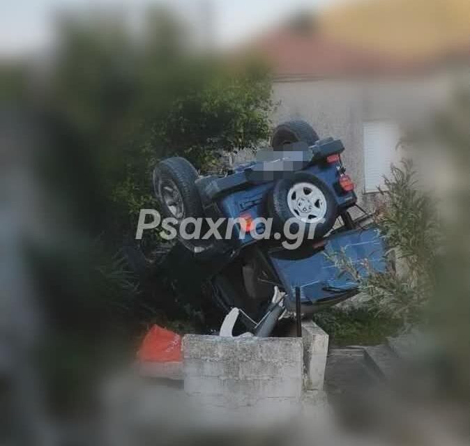 Τροχαίο στα Νέα Στύρα:Τζιπ τούμπαρε και έπεσε σε αυλή σπιτιού