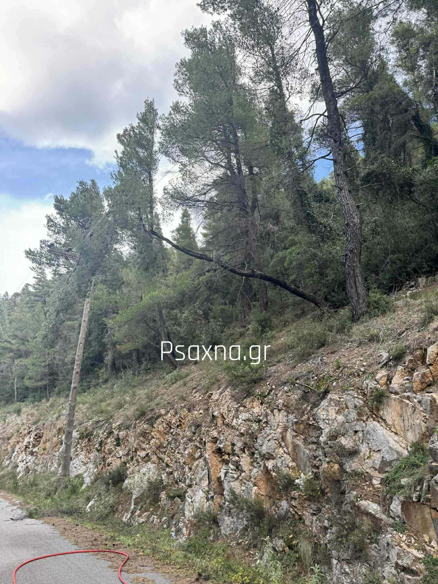 Φωτιά σε καλώδια της ΔΕΗ λόγω πτώσης πεύκου στο δρόμο Γλυφάδας – Βύθουρης