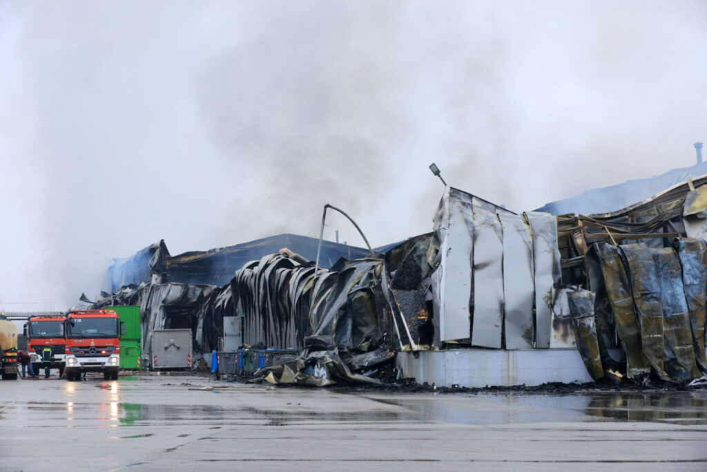 Από τη σφοδρότητα του ωστικού κύματος άνοιξαν τα διπλανά πάνελ, ενώ μέρος της σκεπής κατέρρευσε, με αποτέλεσμα το κτίριο να τυλιχθεί αμέσως στις φλόγες.