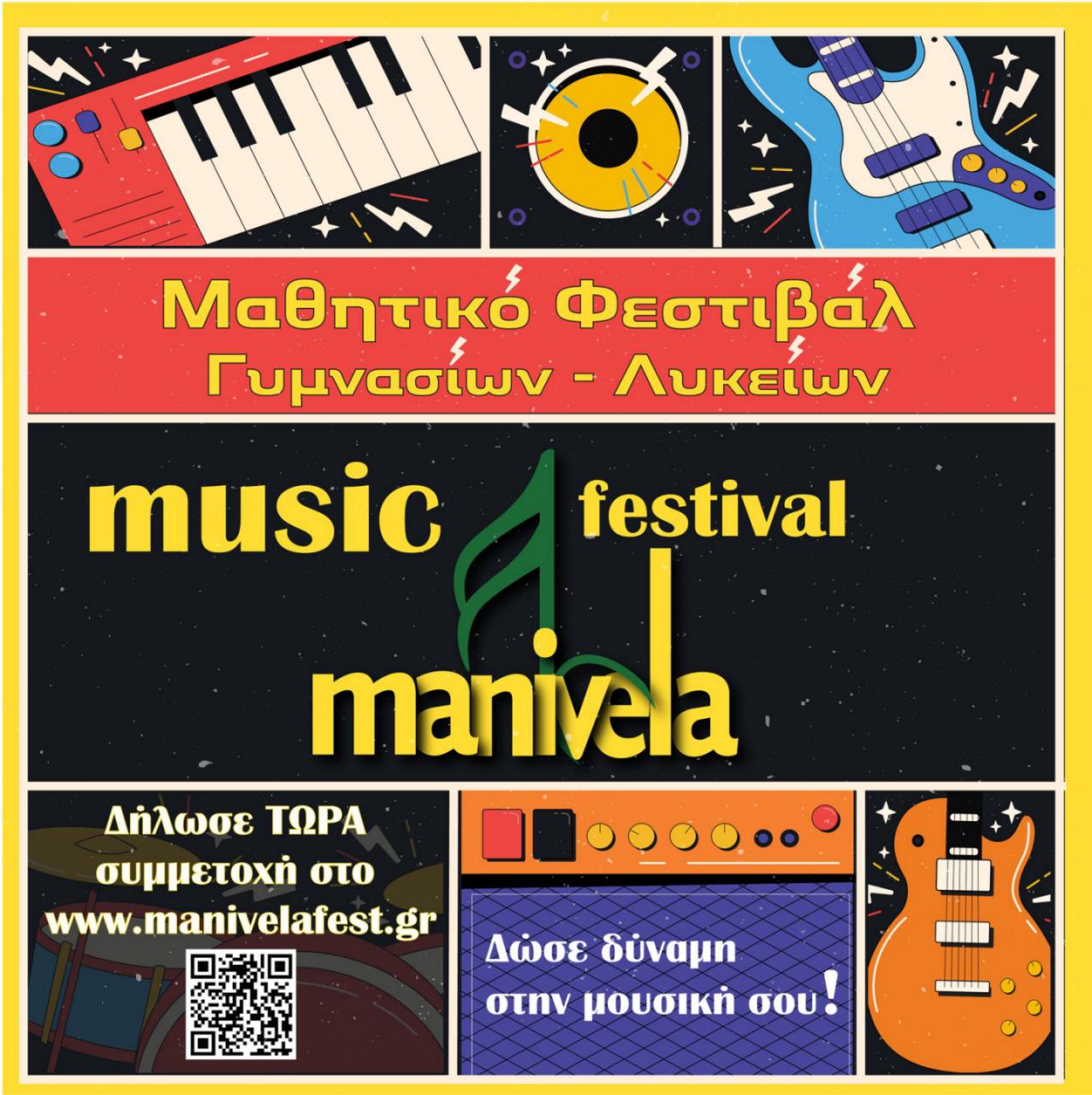 Από τους βασικούς στόχους του Πολιτιστικού Συλλόγου “Μανιβέλα” είναι και η διοργάνωση του μαθητικού μουσικού φεστιβάλ “Manivela Fest” που θα γίνει το Σεπτέμβριο στη Χαλκίδα. Απευθύνεται σε μαθητές και μαθήτριες Γυμνασίων και Λυκείων, είτε σόλο καλλιτέχνες είτε συγκροτήματα.