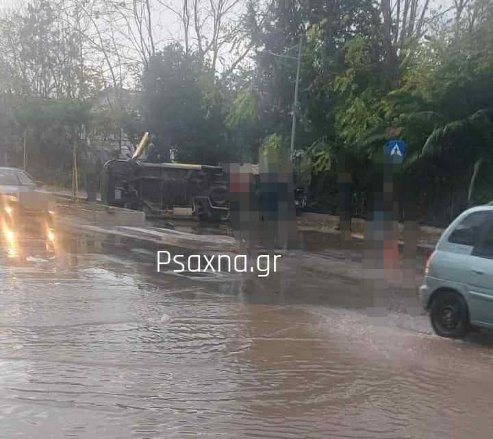 Χαλκίδα:Αυτοκίνητο αναποδογύρισε έξω από την Αστυνομία