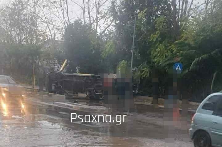 Χαλκίδα:Αυτοκίνητο αναποδογύρισε έξω από την Αστυνομία