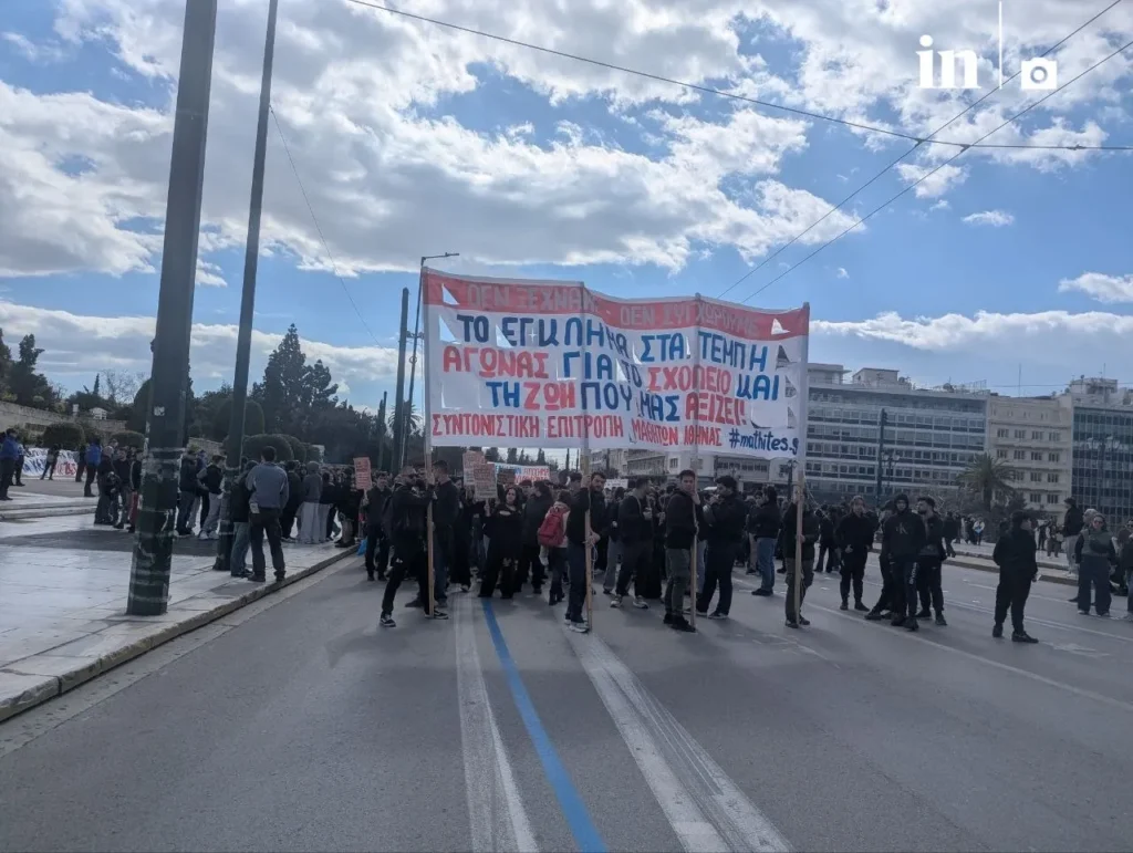 Με συνθήματα «εσείς μιλάτε για κέρδη και ζημιές, εμείς μιλάμε για ανθρώπινες ζωές» φοιτητές και μαθητές βάδισαν στους δρόμους του κέντρου και έφτασαν στο Σύνταγμα.