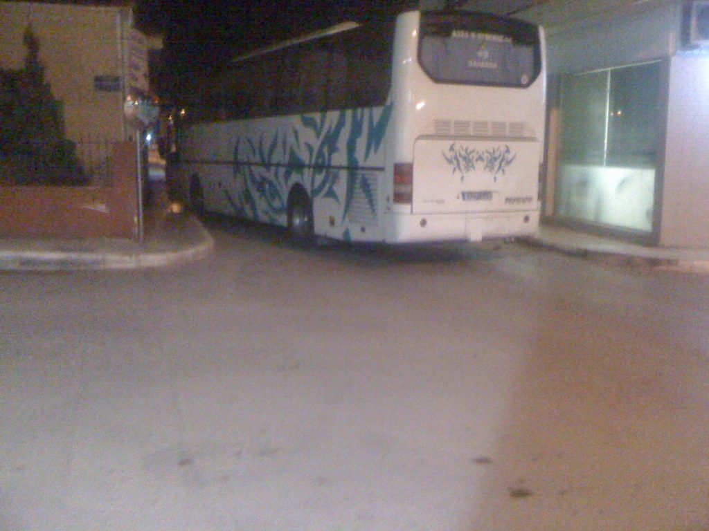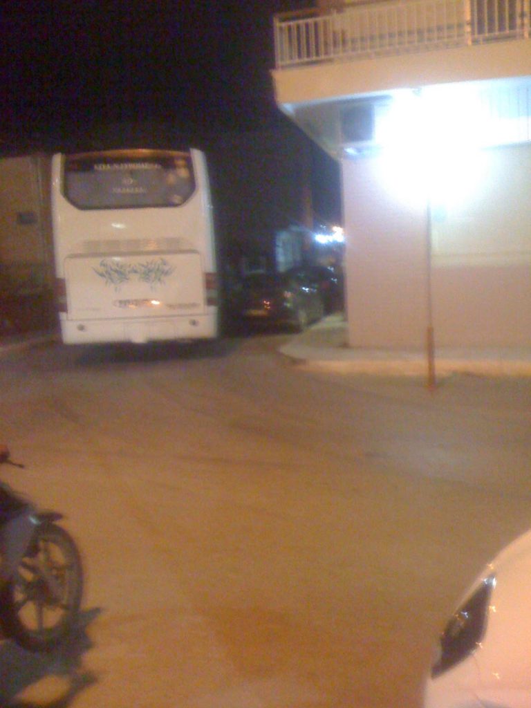 το λεωφορείο κατάφερε με την βοήθεια της αστυνομίας και μετά από πολλές μανούβρες να περάσει την στροφή.