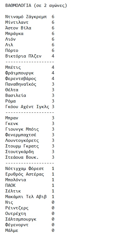Μακάμπι Τελ Αβίβ (Ισραήλ) – Ντιναμό Ζάγκρεμπ (Κροατία) 1-3 (14′ Αμπού Φαρχί – 16′ Λίσιτσα, 19′, 72′ Λιούμπισιτς)
